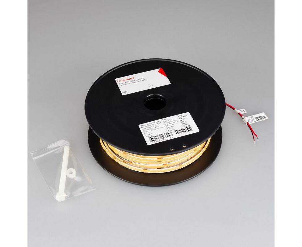 Светодиодная лента Arlight 8W/m 320LED/m CSP теплый белый 50М COB-X320-8mm 48V Warm3000 043244
