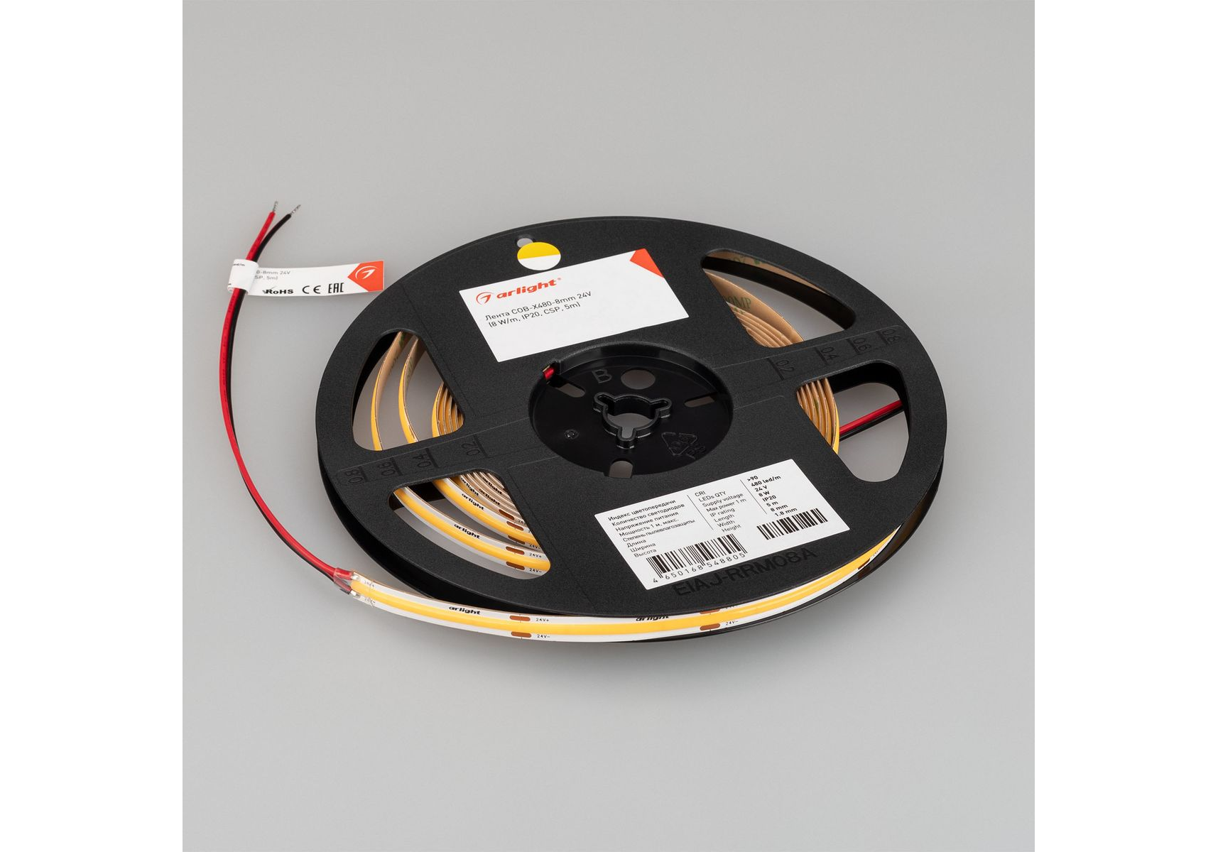 Светодиодная лента Arlight 8W/m 480Led/m CSP теплый белый 5M COB-X480-8mm 24V Warm3500 044575