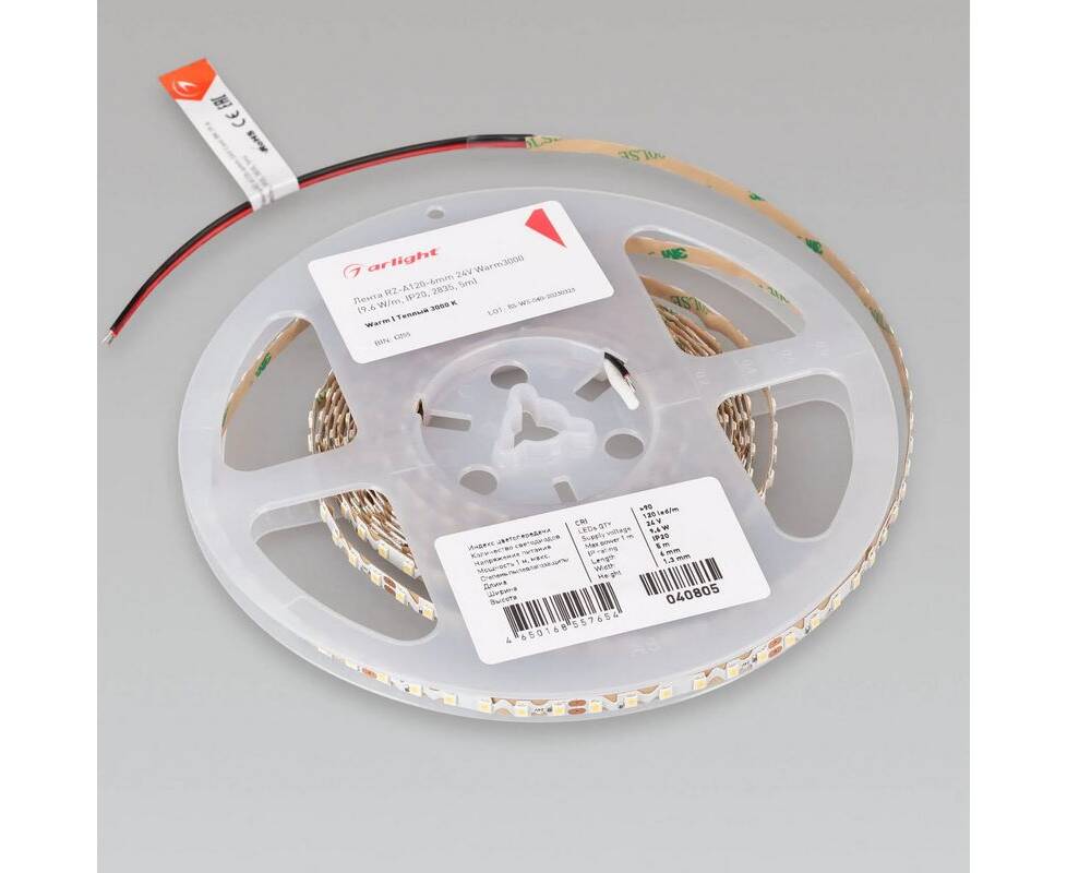 Светодиодная лента Arlight 9,6W/m 120LED/m 2835SMD теплый белый RZ-A120-6mm 24V 040805
