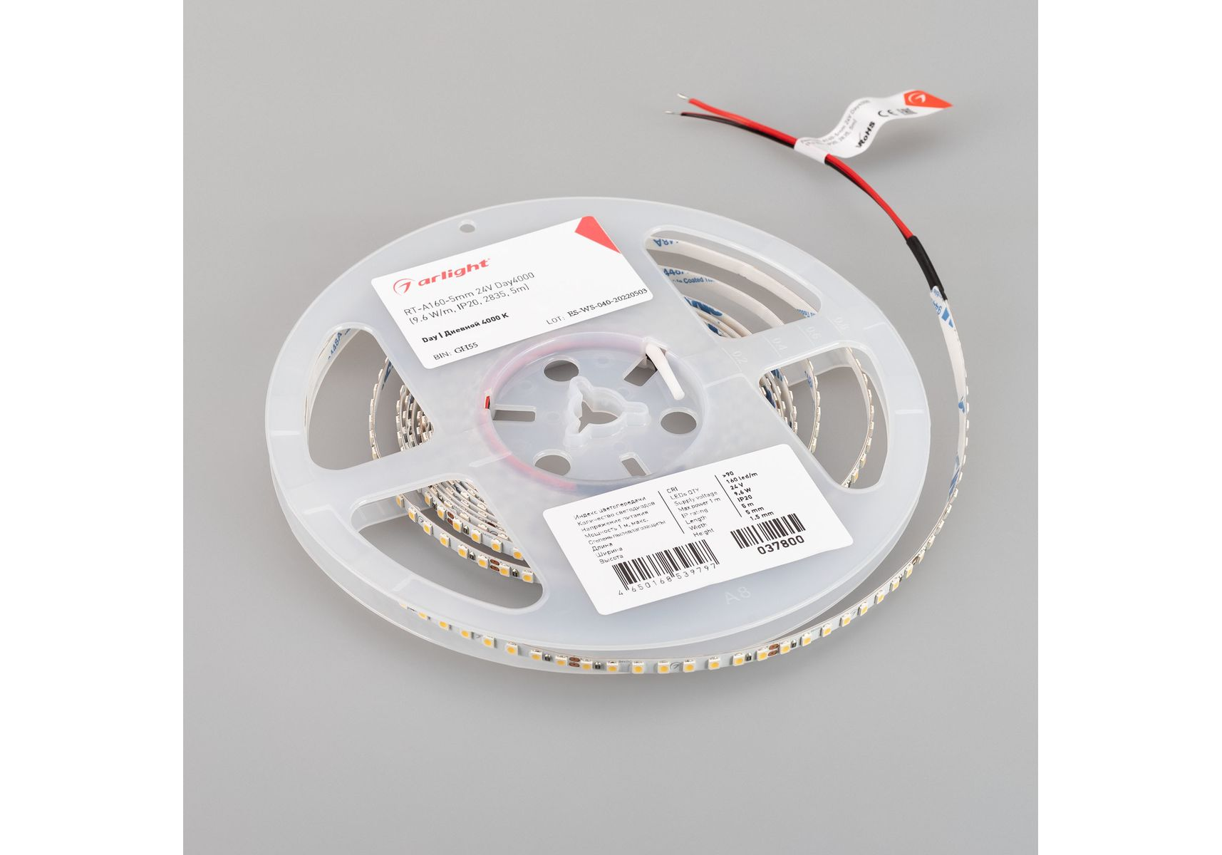 Светодиодная лента Arlight 9,6W/m 160LED/m 2835SMD дневной белый 5M RT-A160-5mm 24V Day4000 037800