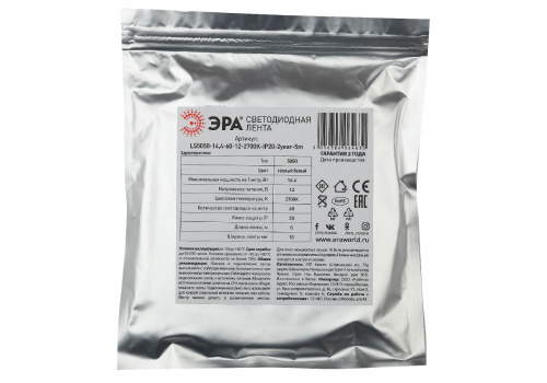 Светодиодная лента Эра 12В 5050 14,4Вт/м 6500K 5м IP20 LS5050-14,4-60-12-6500K-IP20-2year-5m KU-5050