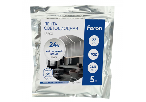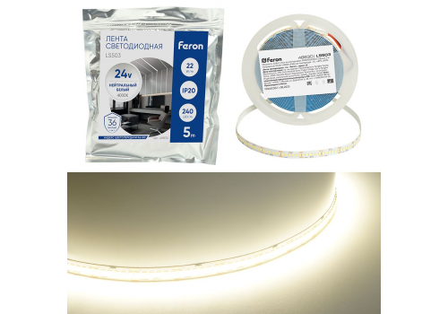 Светодиодная лента Feron 22W/m 240LED/m 2835SMD дневной белый 5М LS503 48830