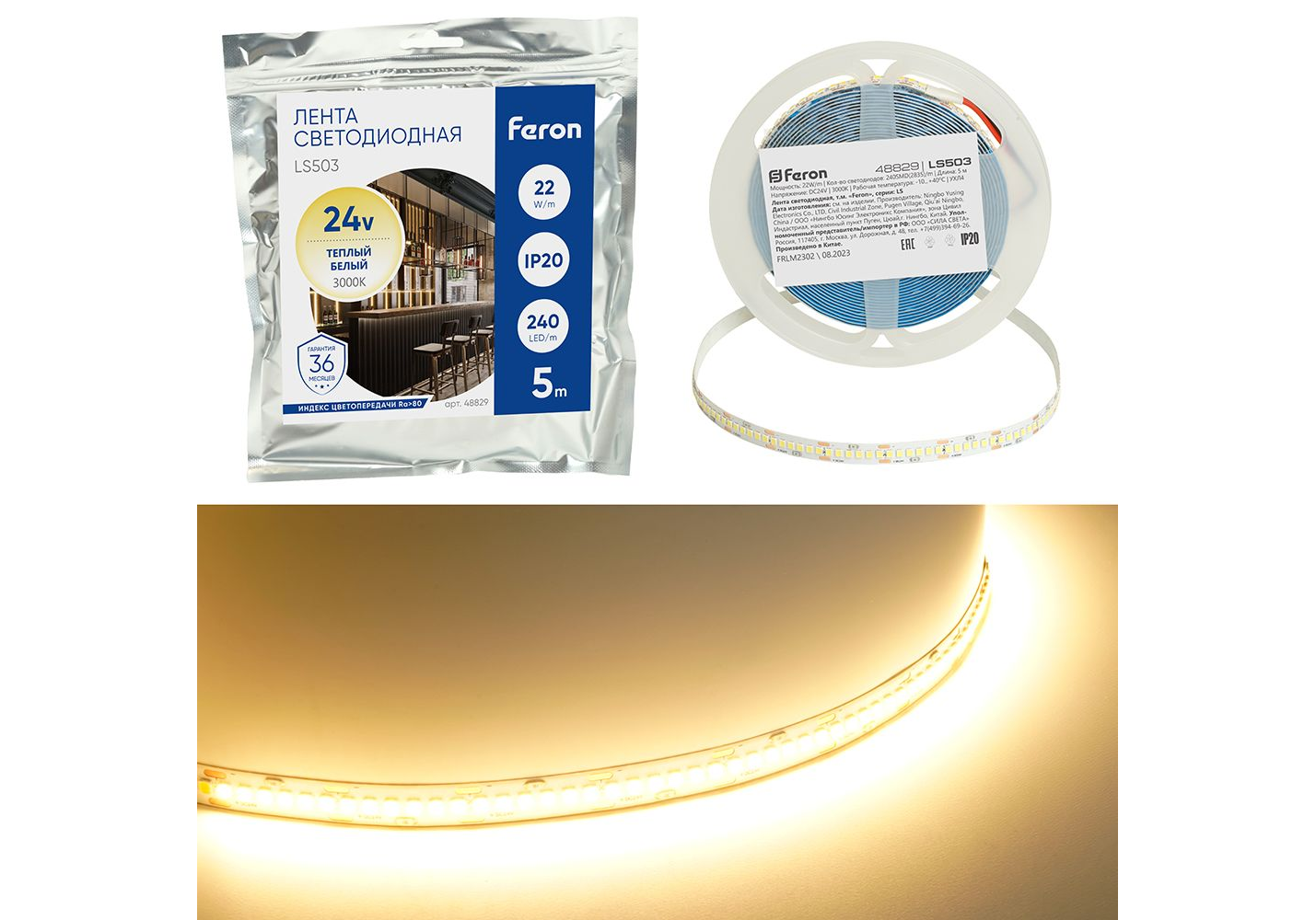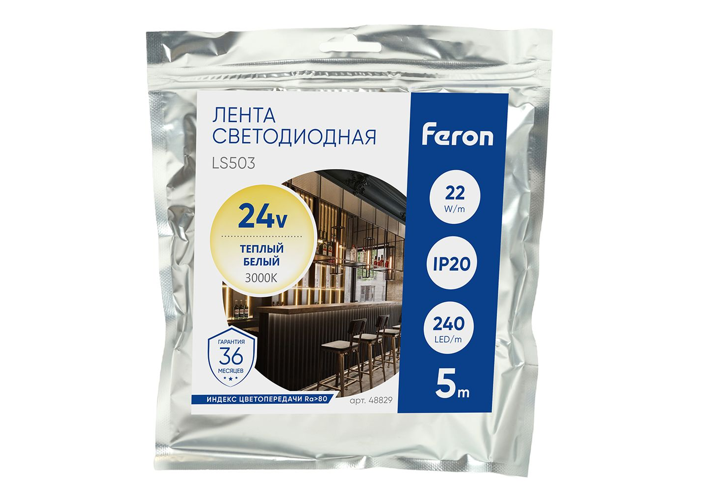 Светодиодная лента Feron 22W/m 240LED/m 2835SMD теплый белый 5М LS503 48829