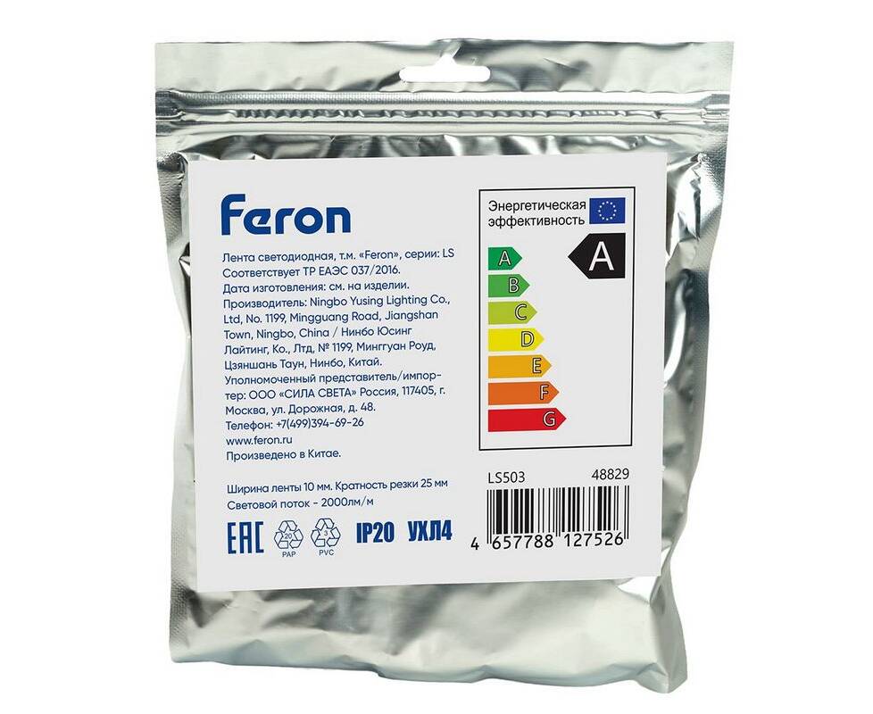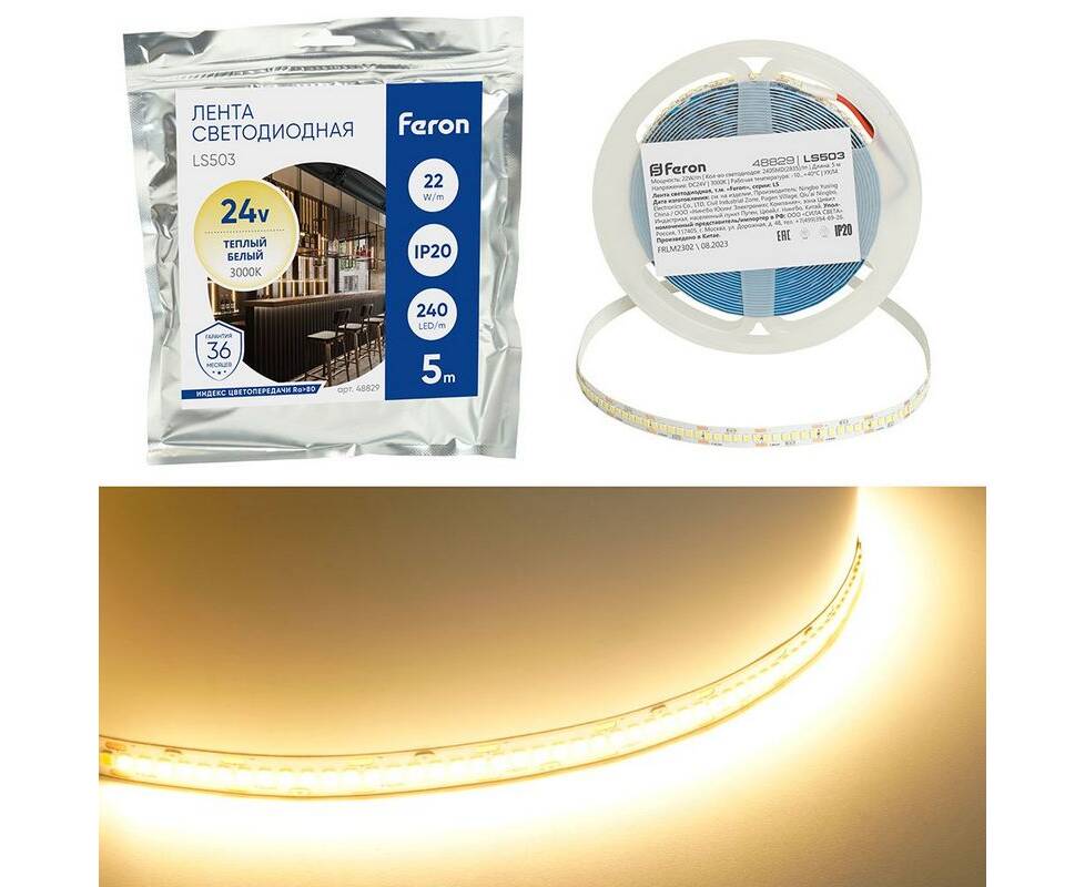 Светодиодная лента Feron 22W/m 240LED/m 2835SMD теплый белый 5М LS503 48829