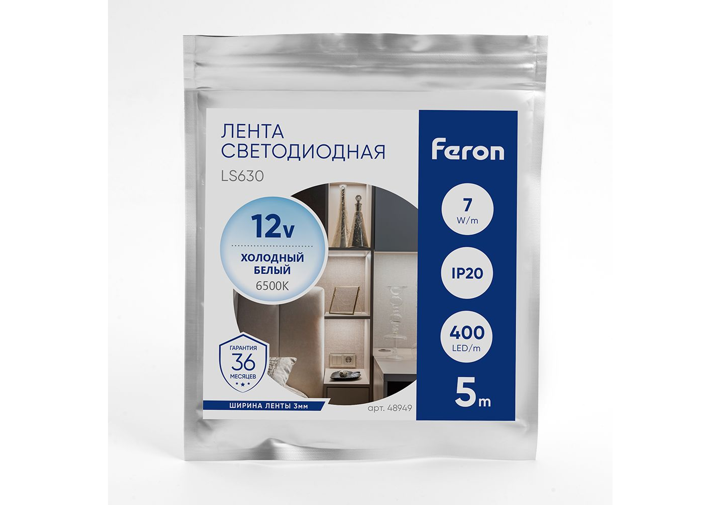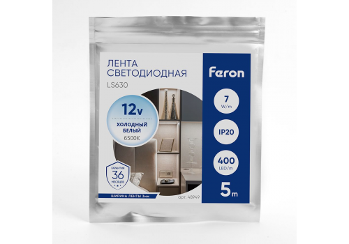 Светодиодная лента Feron 7W/m 400LED/m COB холодный белый 5М LS630 48949