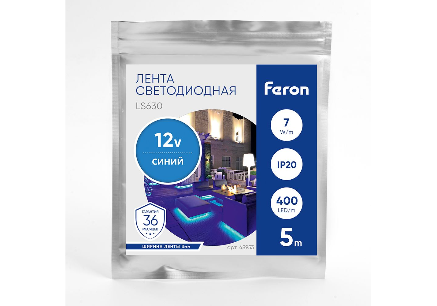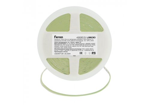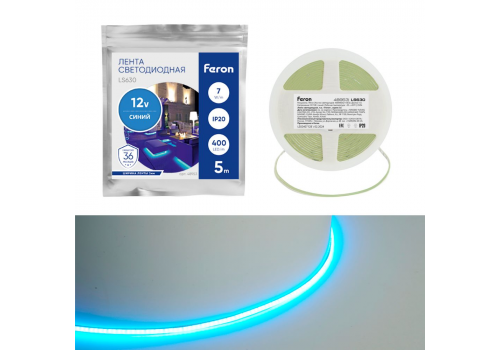 Светодиодная лента Feron 7W/m 400LED/m COB синий 5М LS630 48953