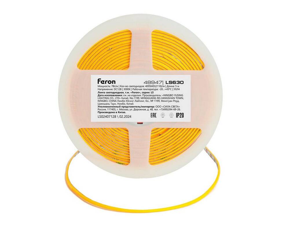 Светодиодная лента Feron 7W/m 400LED/m COB теплый белый 5М LS630 48947
