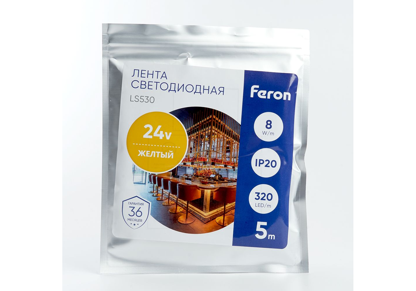 Светодиодная лента Feron 8W/m 320LED/m 2110SMD желтый 5M LS530 48269