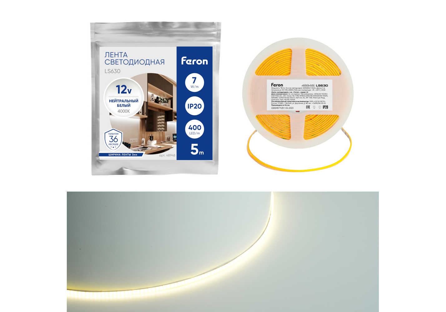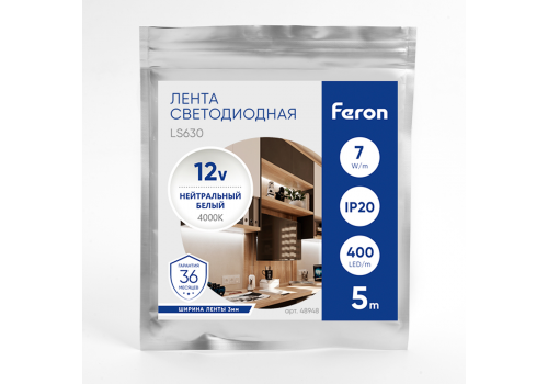 Светодиодная лента Feron LS630 12В 7Вт/м 4000К 5м IP20 48948