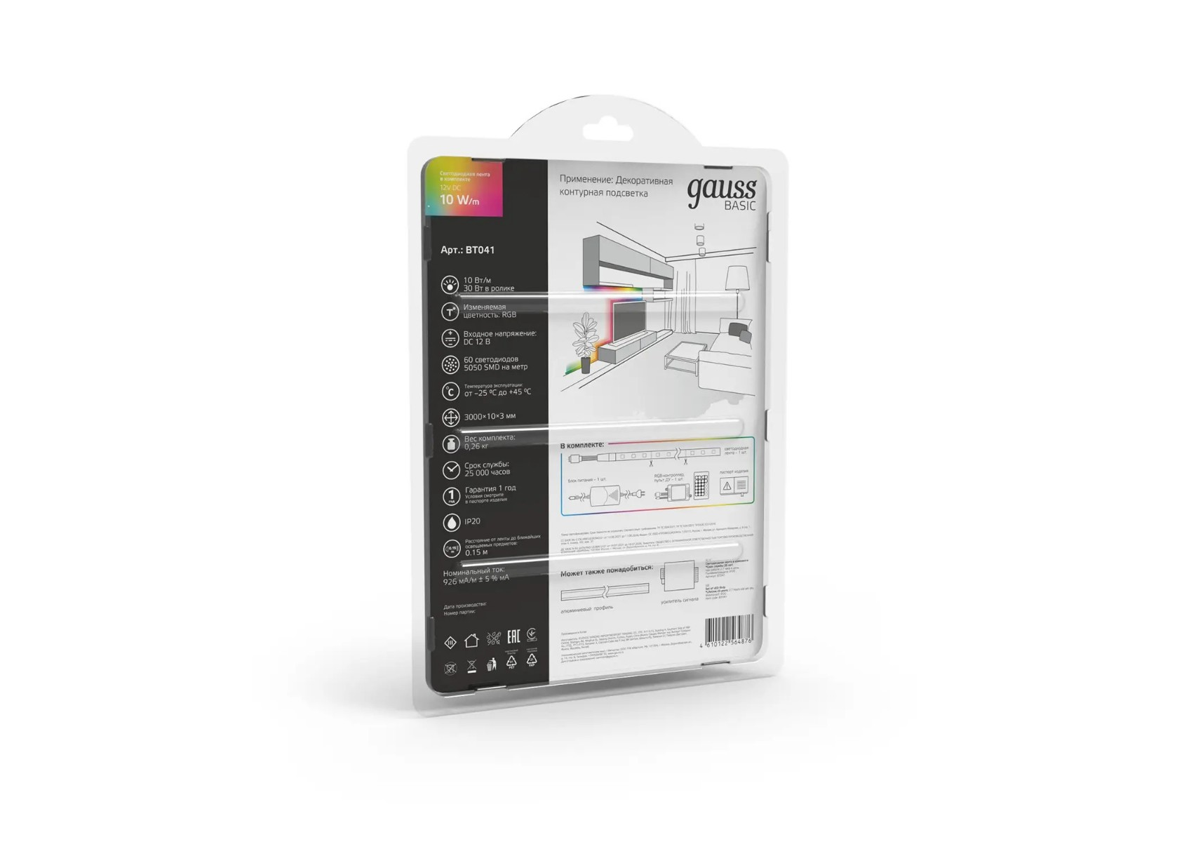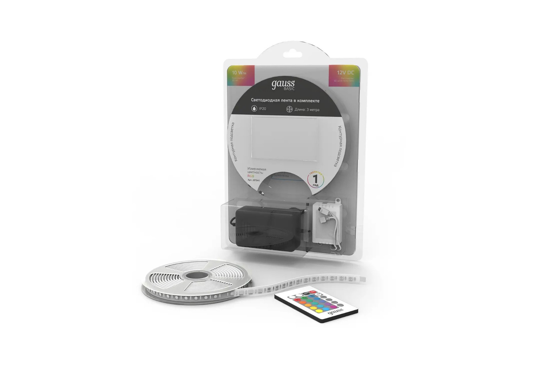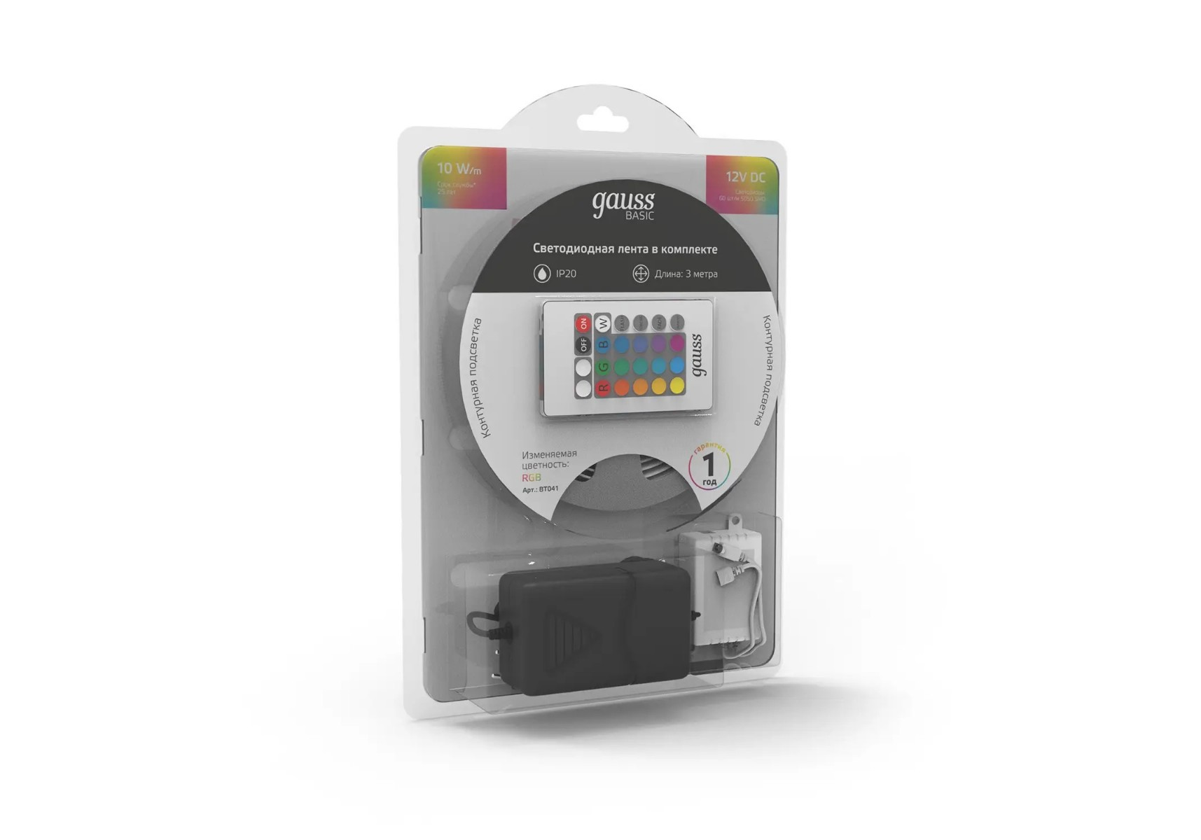 Светодиодная лента Gauss 10W/m 60LED/m 5050SMD разноцветный 3M BT041