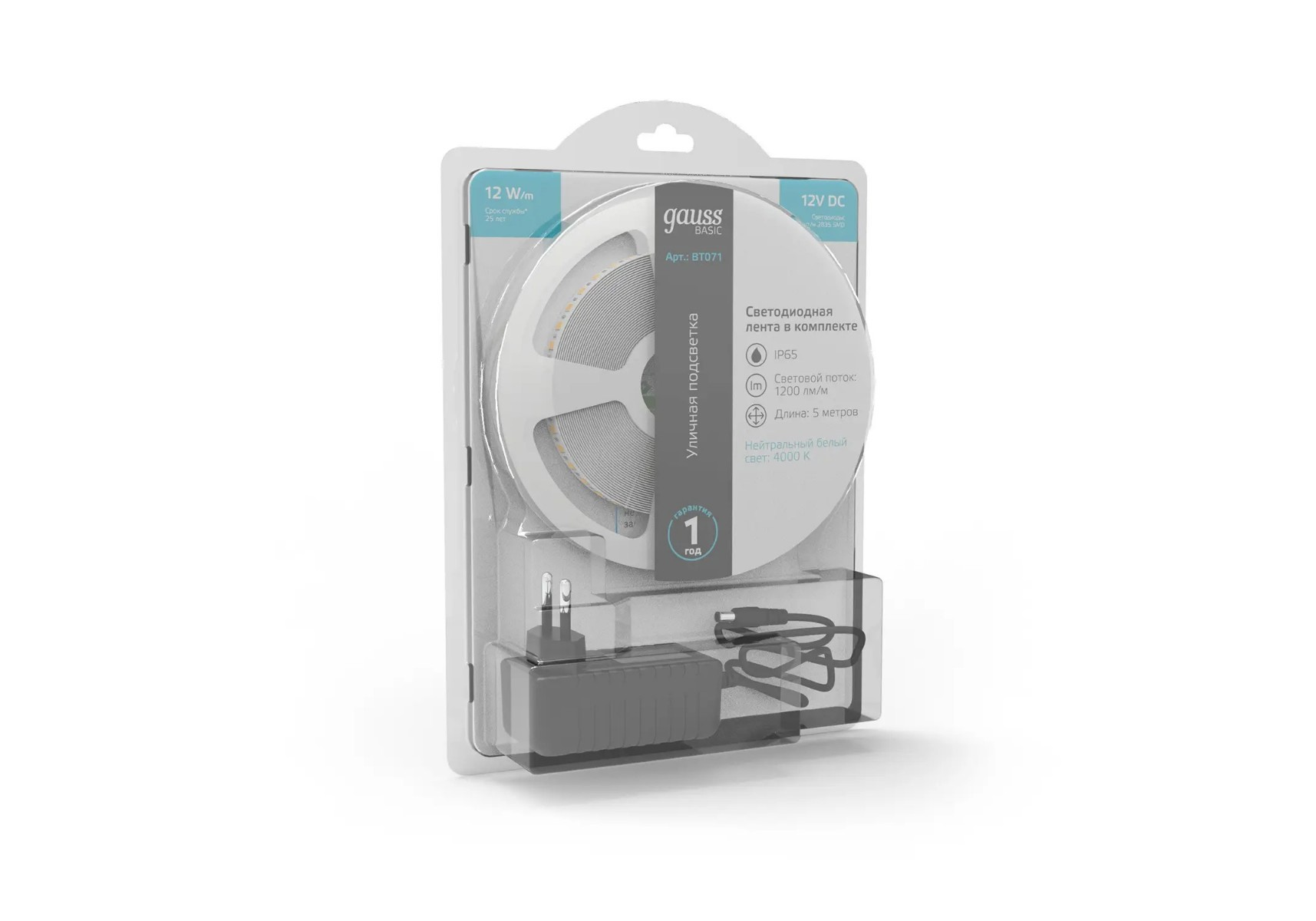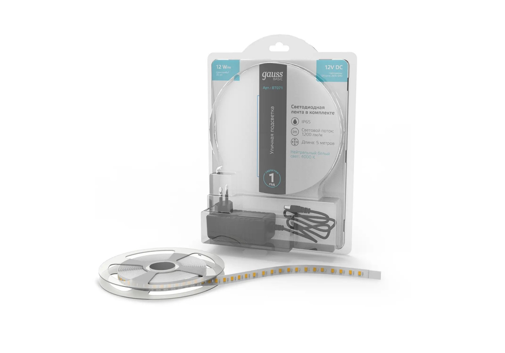 Светодиодная лента Gauss 12W/m 120LED/m 2835SMD нейтральный белый 5M BT071