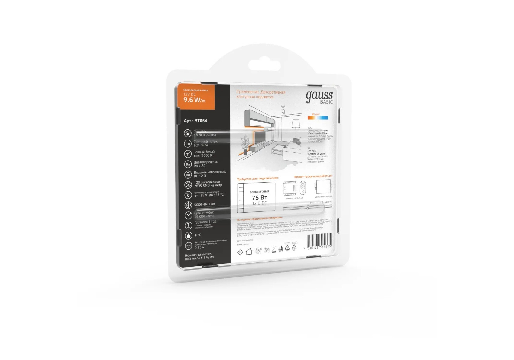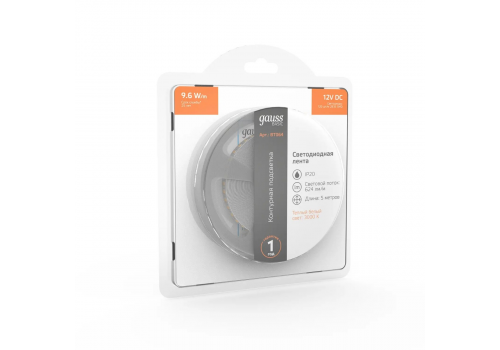 Светодиодная лента Gauss 9,6W/m 120LED/m 2835SMD теплый белый 5M BT064