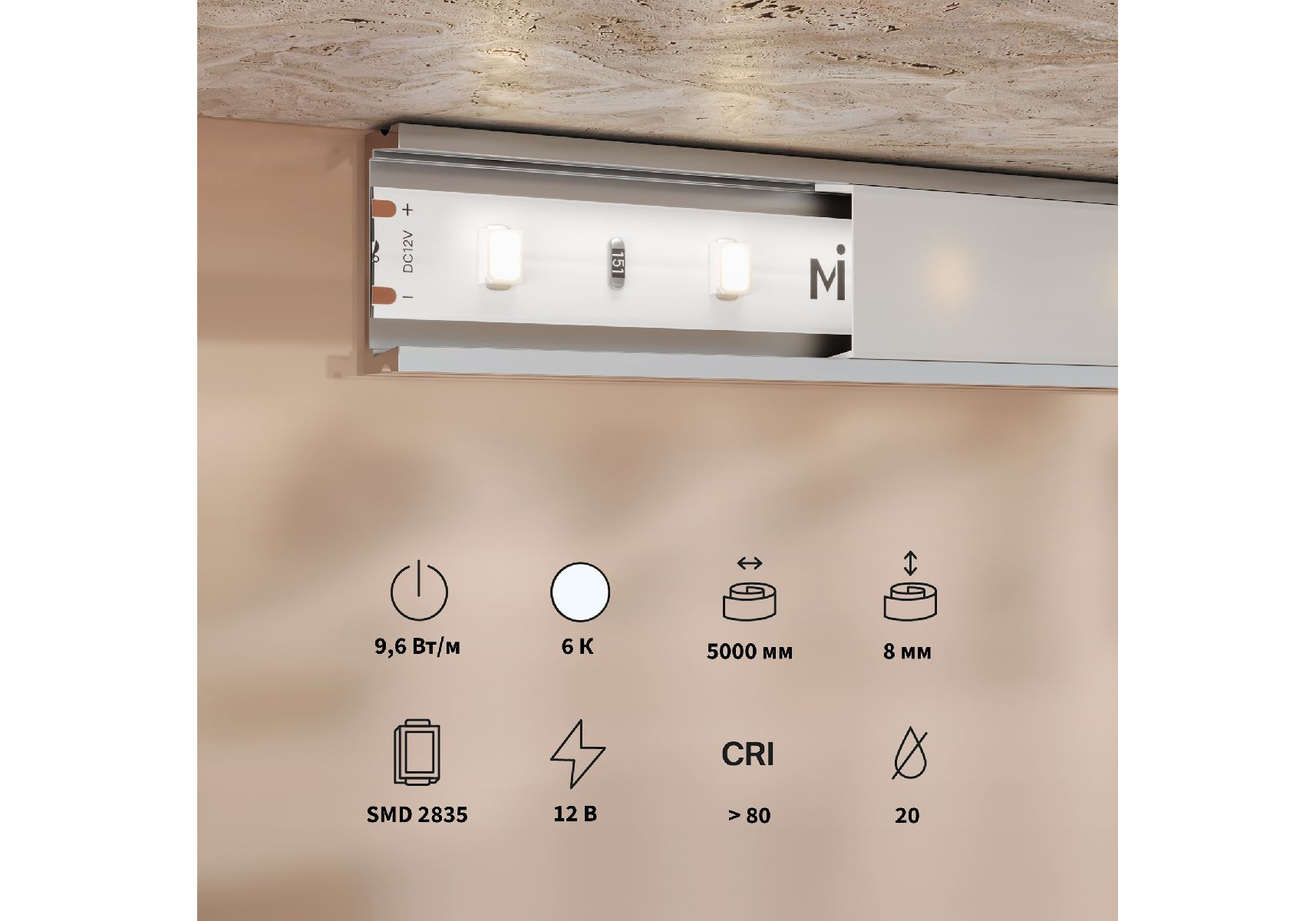 Светодиодная лента Maytoni Base 12В 2835 9,6Вт/м 6000K 5м IP20 201170
