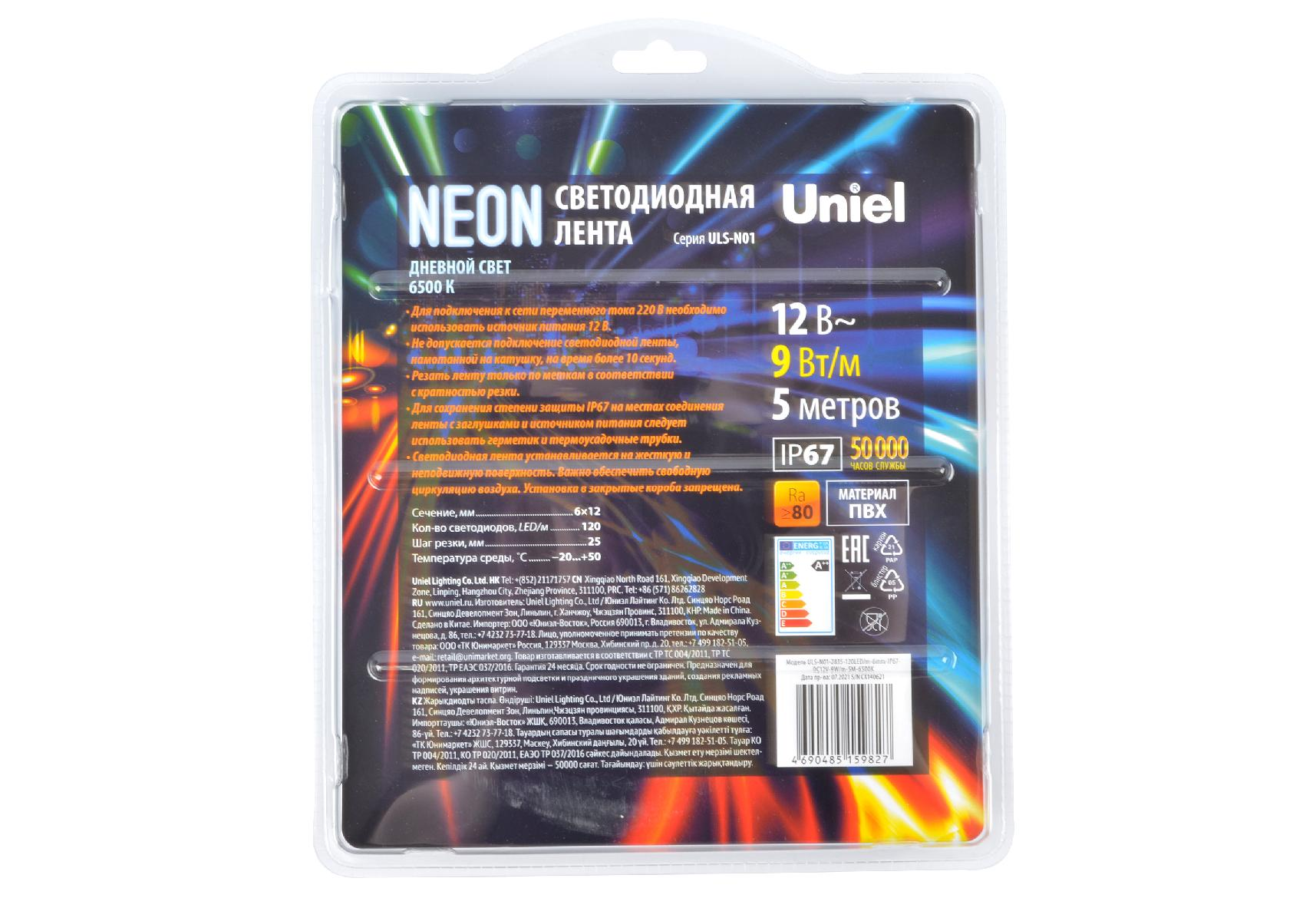 ULS-N01-2835-120LED/m-6mm-IP67-DC12V-9W/m-5M-6500K блистер