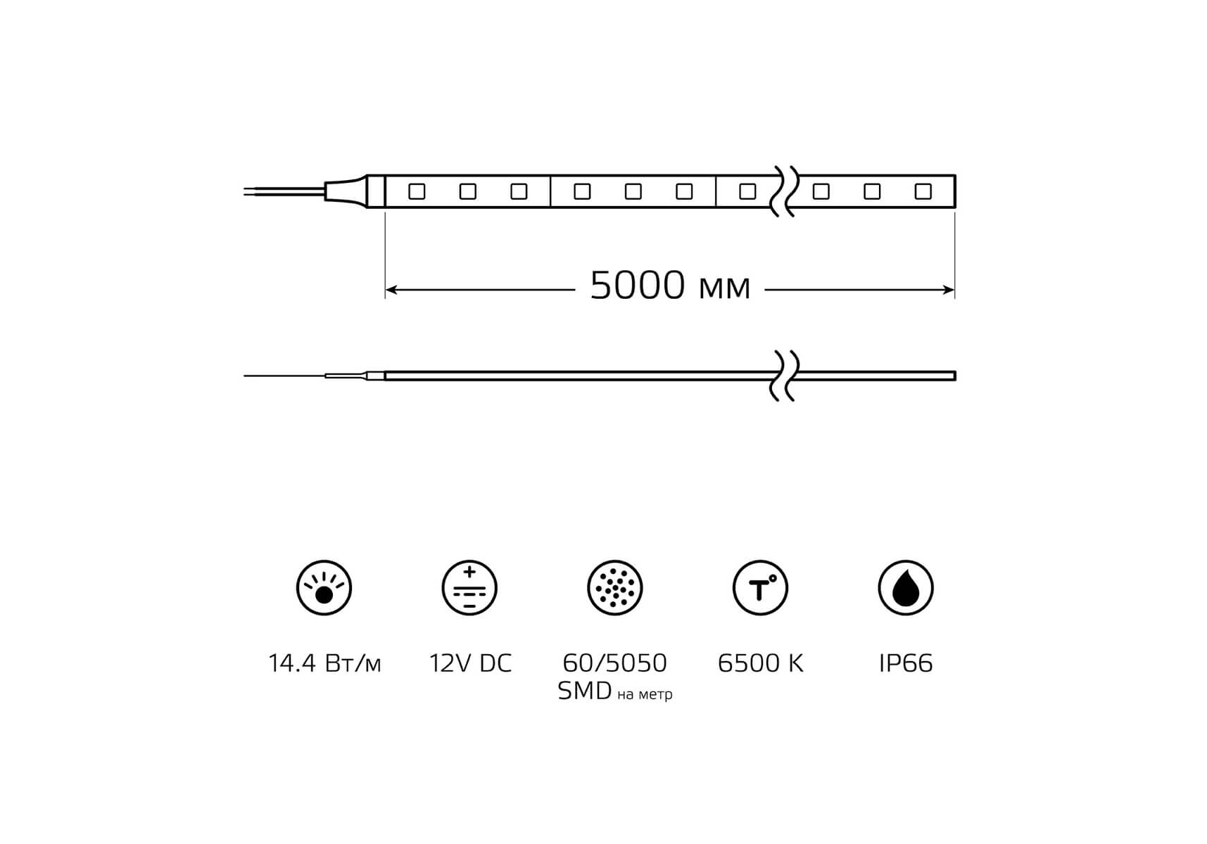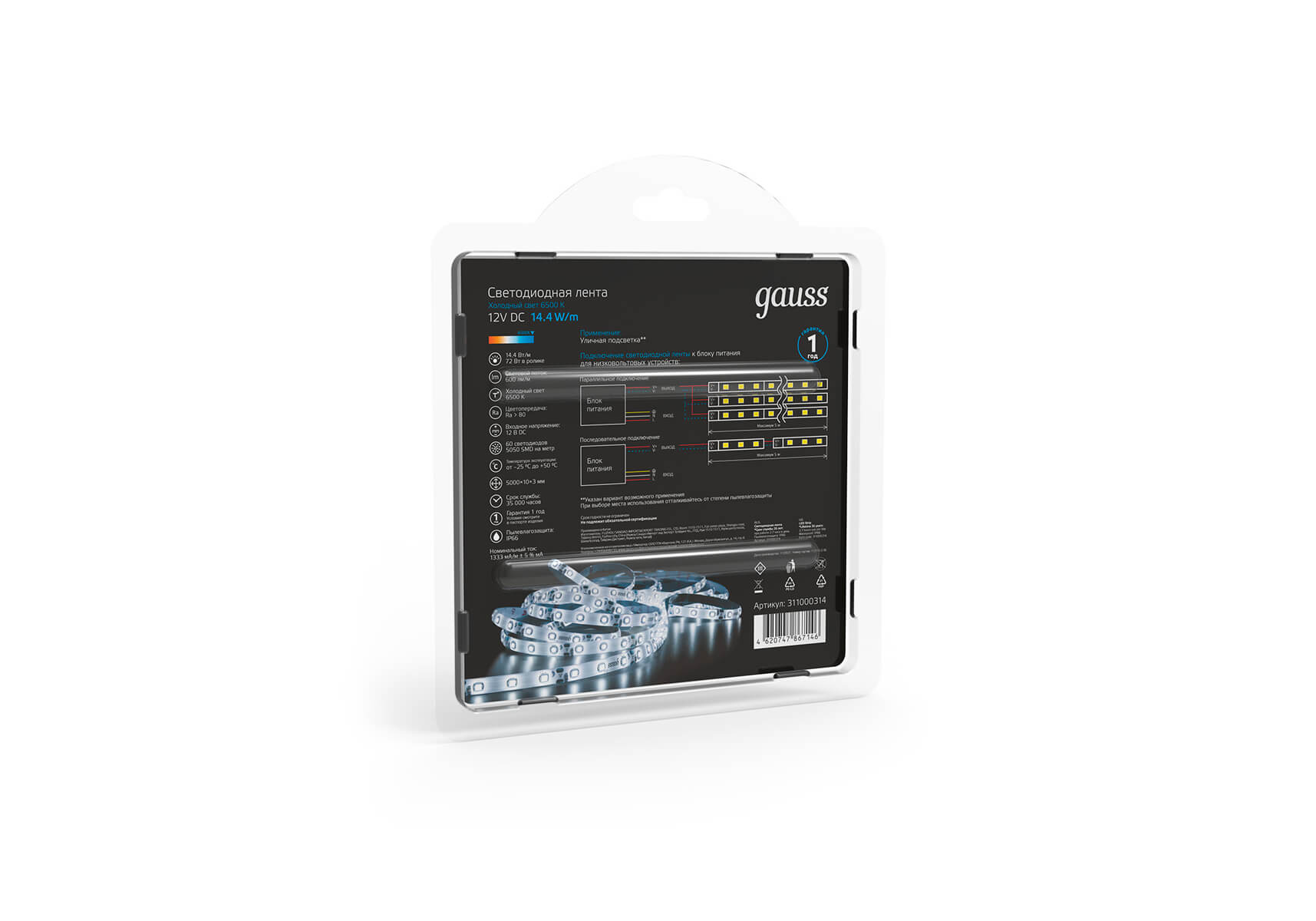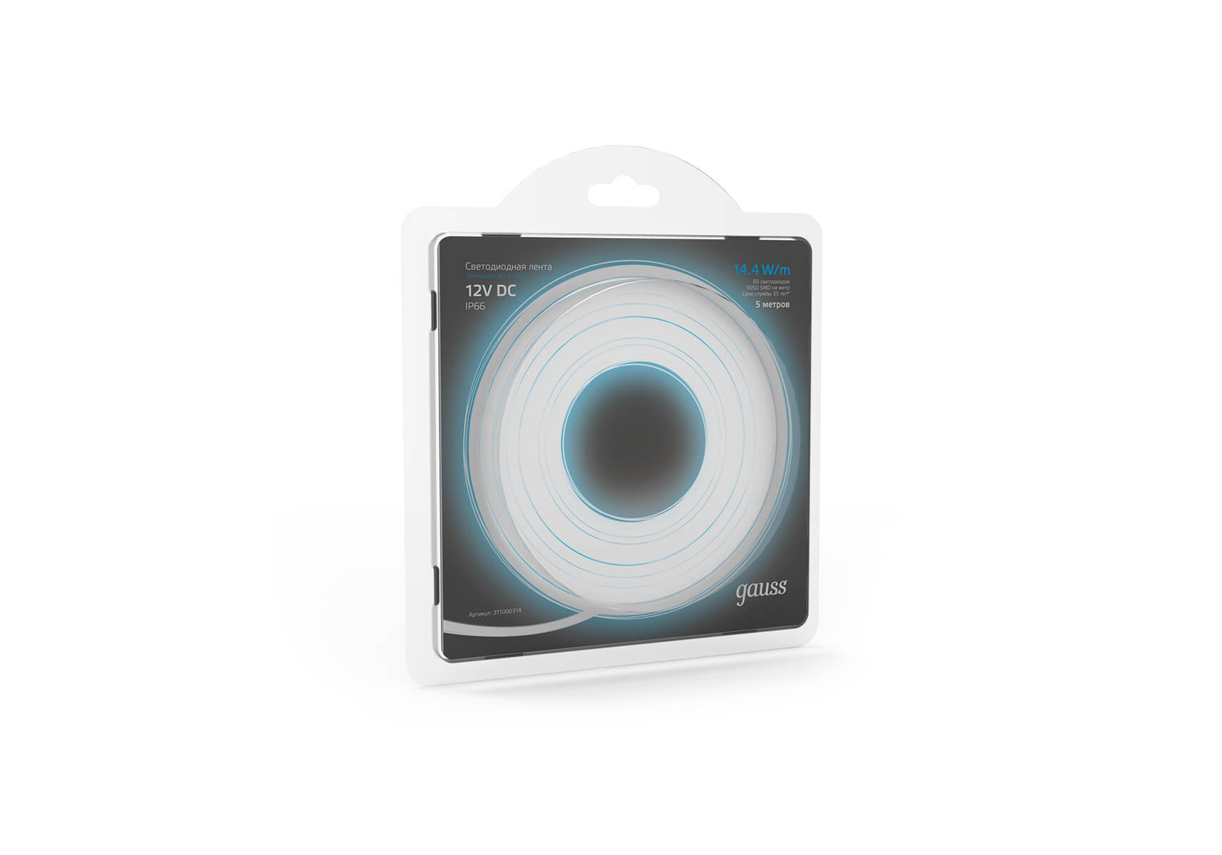 Светодиодная влагозащищенная лента Gauss 14,4W/m 60LED/m 5050SMD холодный белый 5M 311000314