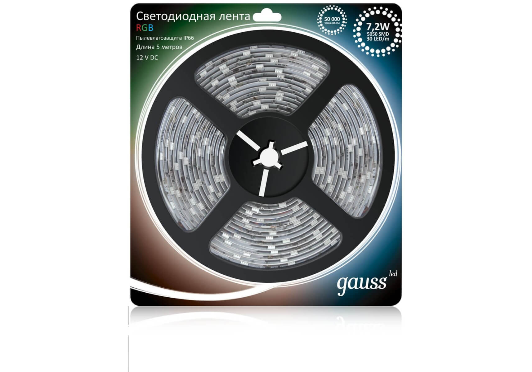 Светодиодная влагозащищенная лента Gauss 7,2W/m 30LED/m 5050SMD RGB 5M 311000407