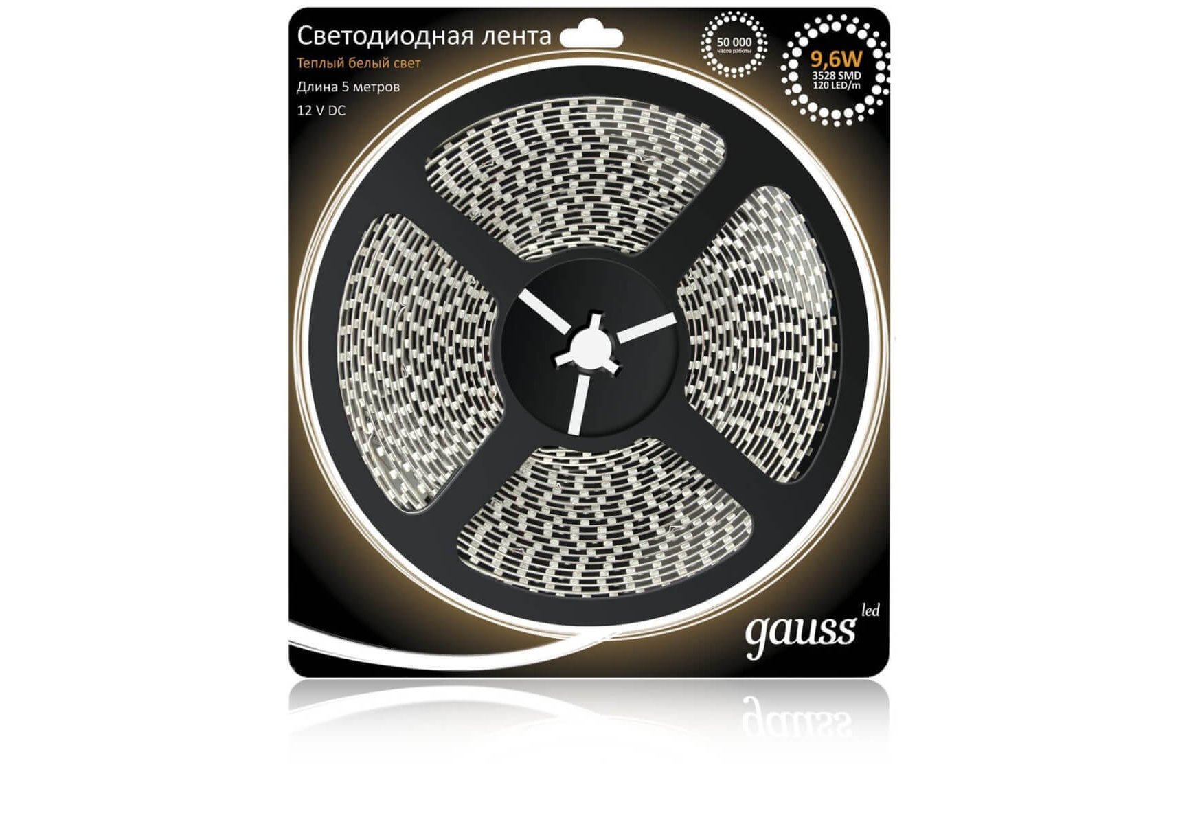 Светодиодная влагозащищенная лента Gauss 9,6W/m 120LED/m 2835SMD теплый белый 5M 311000110