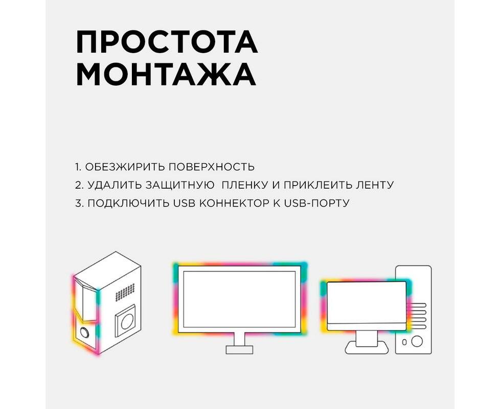 ТВ подсветка, комплект светодиодной ленты Apeyron 5В 5050 7,2Вт/м RGB 0,5м IP20 10-69