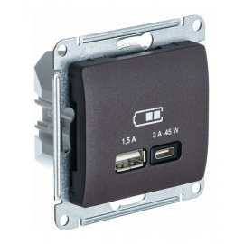 Розетка компьютерная 2xRJ45 Cat.6 Systeme Electric ATLASDESIGN, скрытый монтаж, карбон