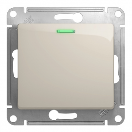 Выключатель 1-клавишный Systeme Electric GLOSSA, с подсветкой, скрытый монтаж, молочный