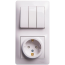 Блок: выключатель 3-клавишный и розетка Systeme Electric GLOSSA, скрытый монтаж, белый