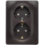 Розетка двухместная Systeme Electric GLOSSA, скрытый монтаж, с заземлением, со шторками, шоколад