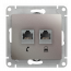 Розетка компьютерная 2xRJ45 Cat.6 Systeme Electric ATLASDESIGN, скрытый монтаж, карбон