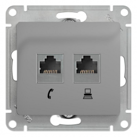 Розетка 2xRJ11+RJ45 Cat.5 Systeme Electric GLOSSA, алюминий