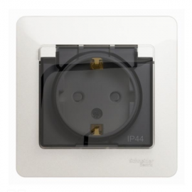 Розетка Systeme Electric GLOSSA, скрытый монтаж, с заземлением, с крышкой, со шторкам...