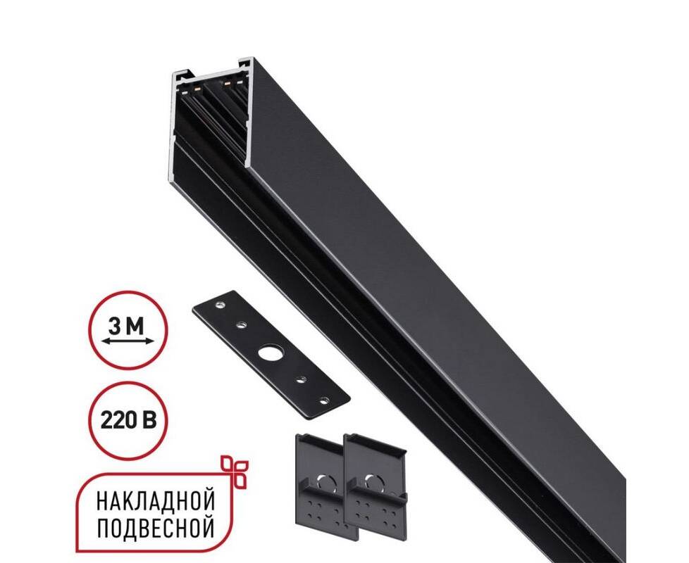 Шинопровод накладной/подвесной в комплекте заглушки 2шт, крышка и соединительная планка 1шт Novotech