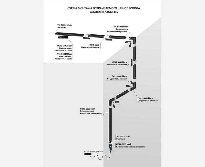 Шинопровод встраиваемый магнитный Italline Atom IT012-5030 black