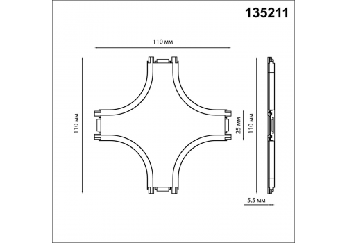 Соединитель X-образный с токопроводом для низковольтного шинопровода Novotech Shino Smal 135211