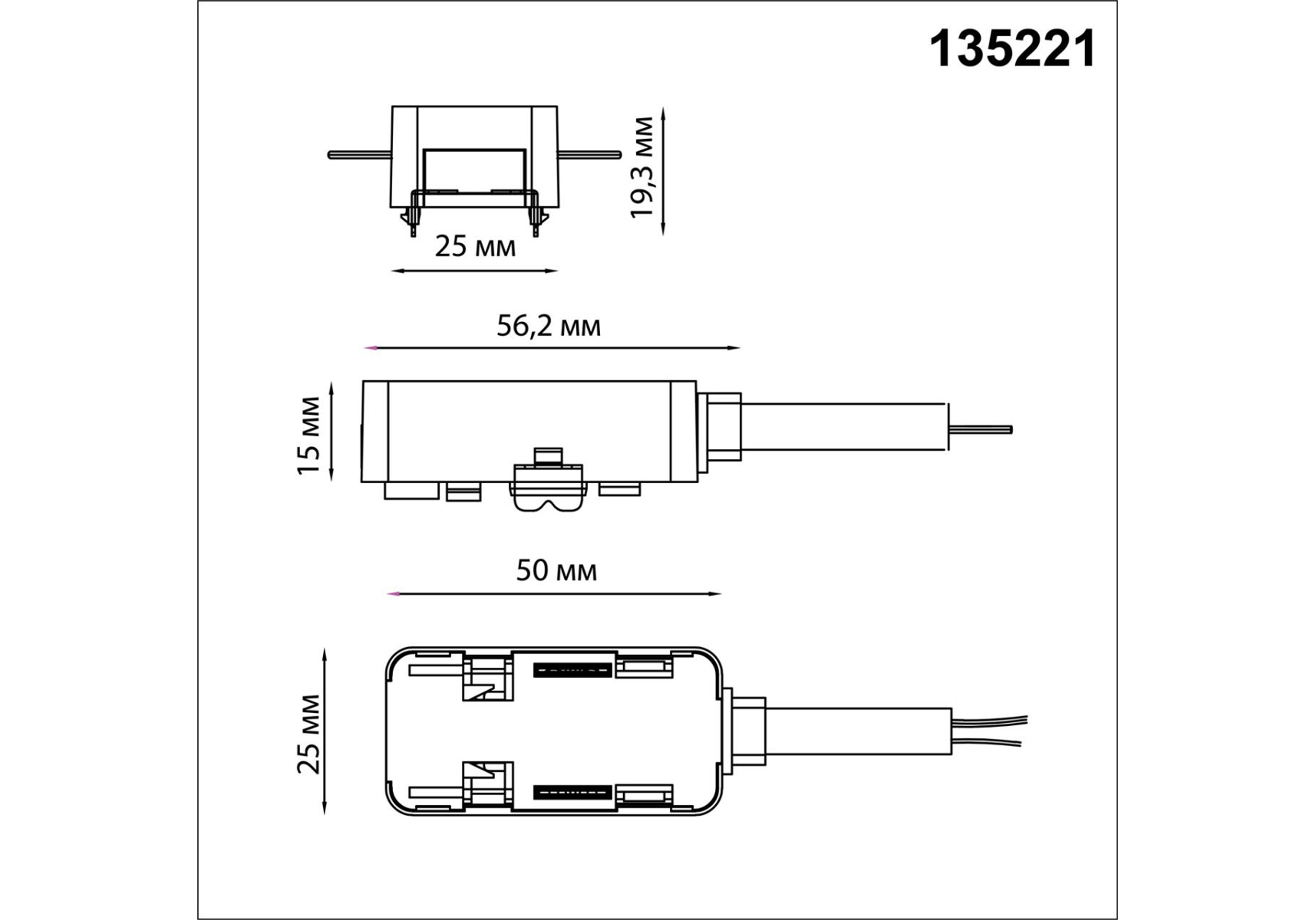 Токопровод для встраиваемого трехфазного шинопровода Novotech Shino Smal 135221