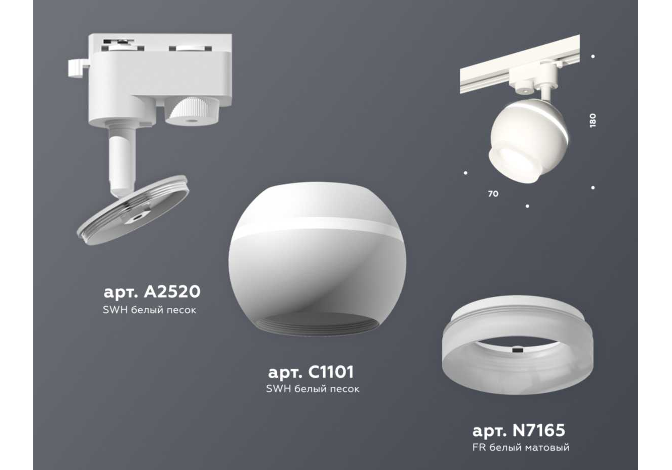 Комплект трекового светильника Ambrella light Track System XT (A2520, C1101, N7165) XT1101071