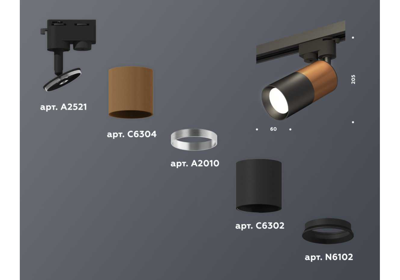 Комплект трекового светильника Ambrella light Track System XT (A2521, C6304, A2010, C6302, N6102) XT6302050