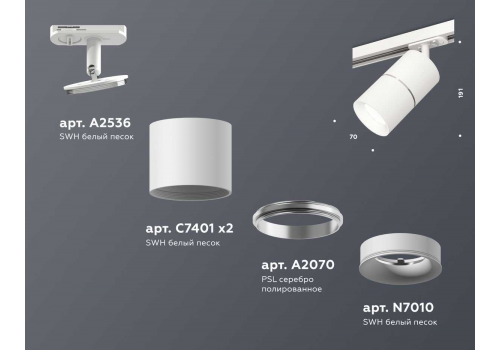 Комплект трекового светильника Ambrella light Track System XT (A2536, C7401, A2070, C7401, N7010) XT7401001