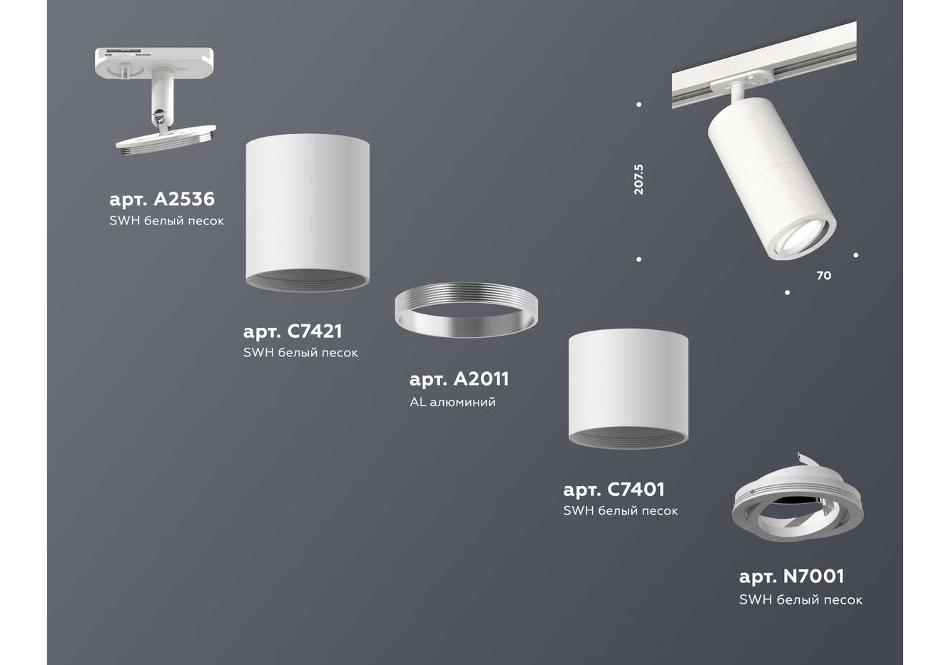 Комплект трекового светильника Ambrella light Track System XT (A2536, C7421, A2011, C7401, N7001) XT7401080
