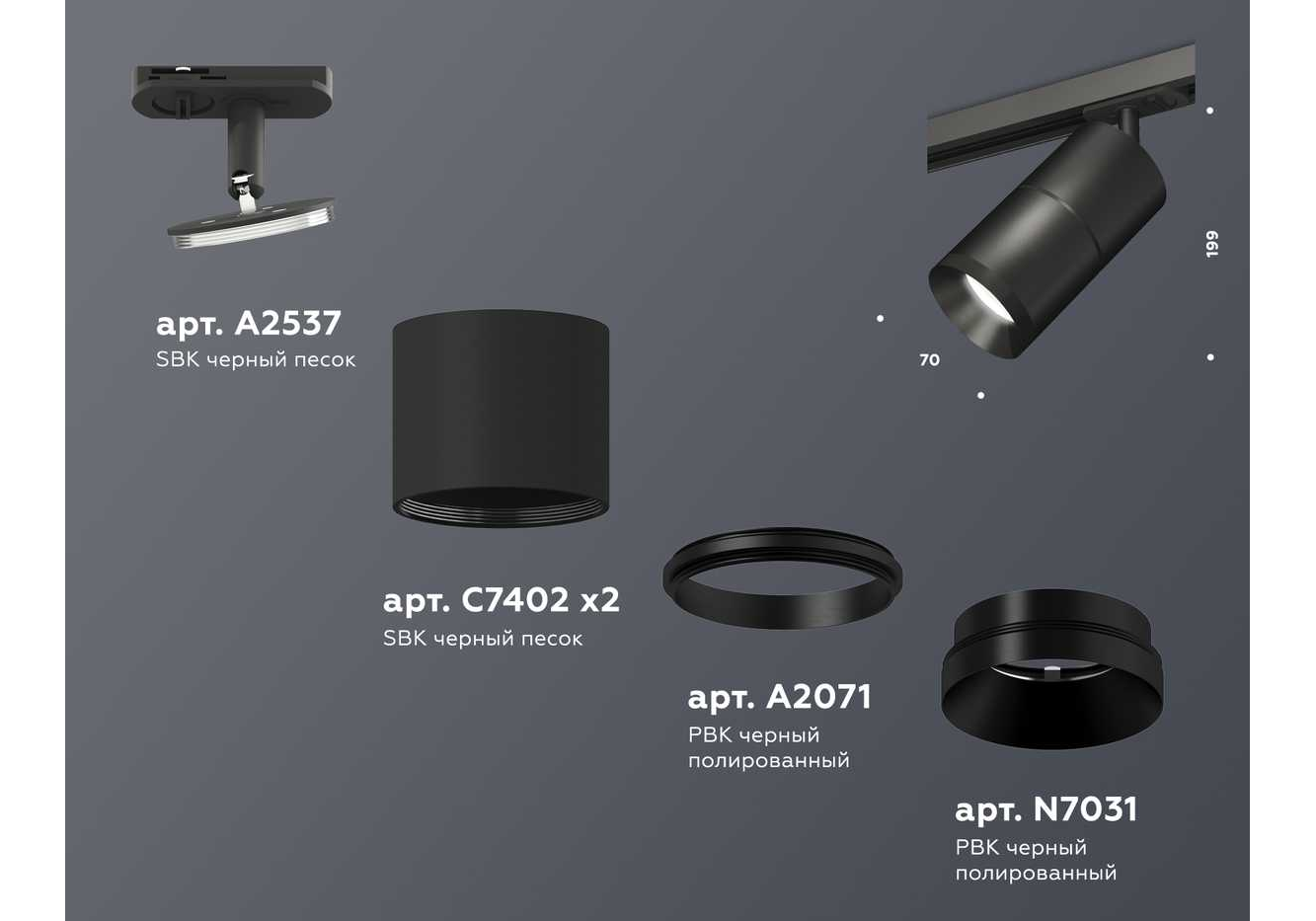 Комплект трекового светильника Ambrella light Track System XT (A2537, C7402, A2071, C7402, N7031) XT7402020