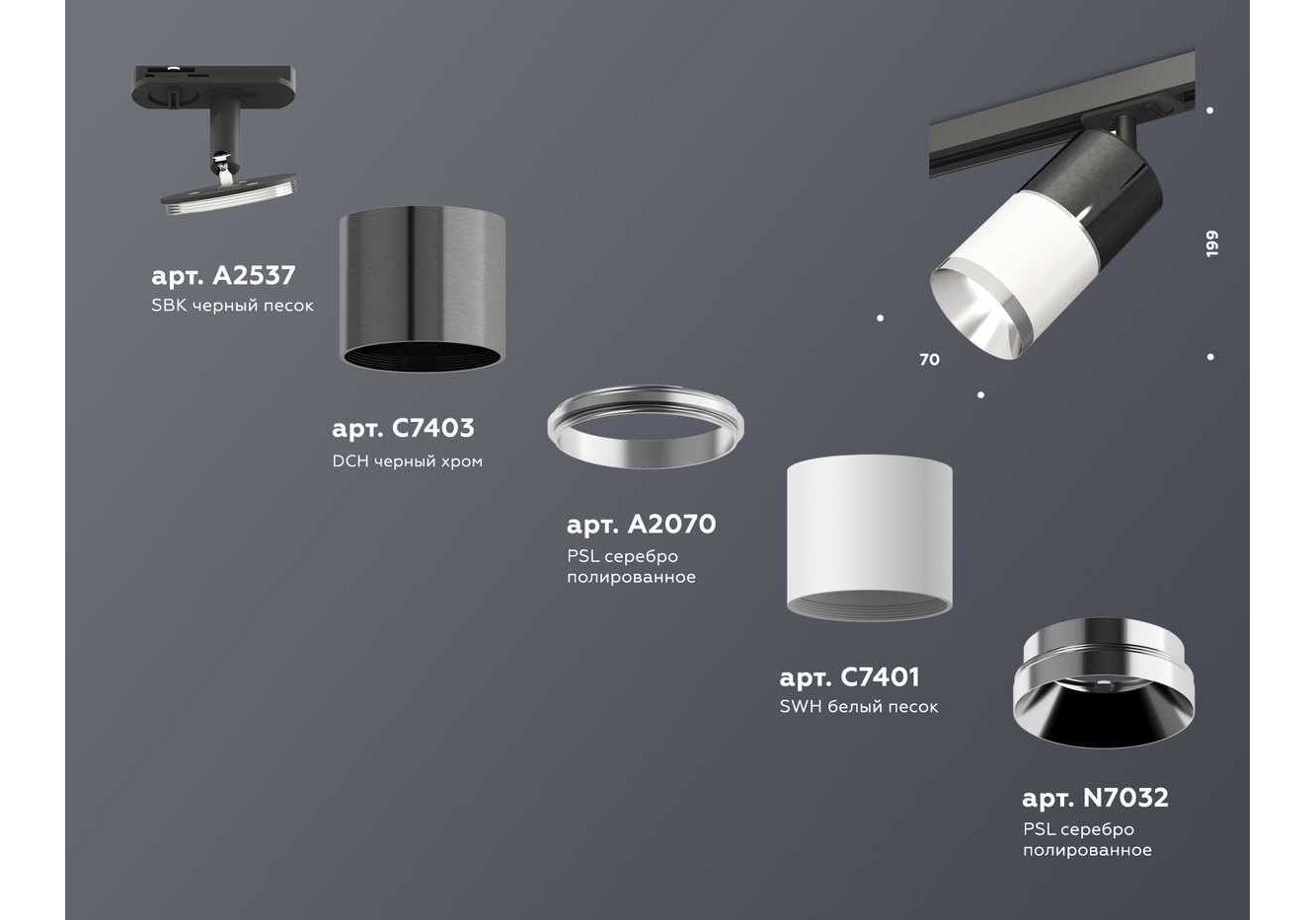 Комплект трекового светильника Ambrella light Track System XT (A2537, C7403, A2070, C7401, N7032) XT7401050