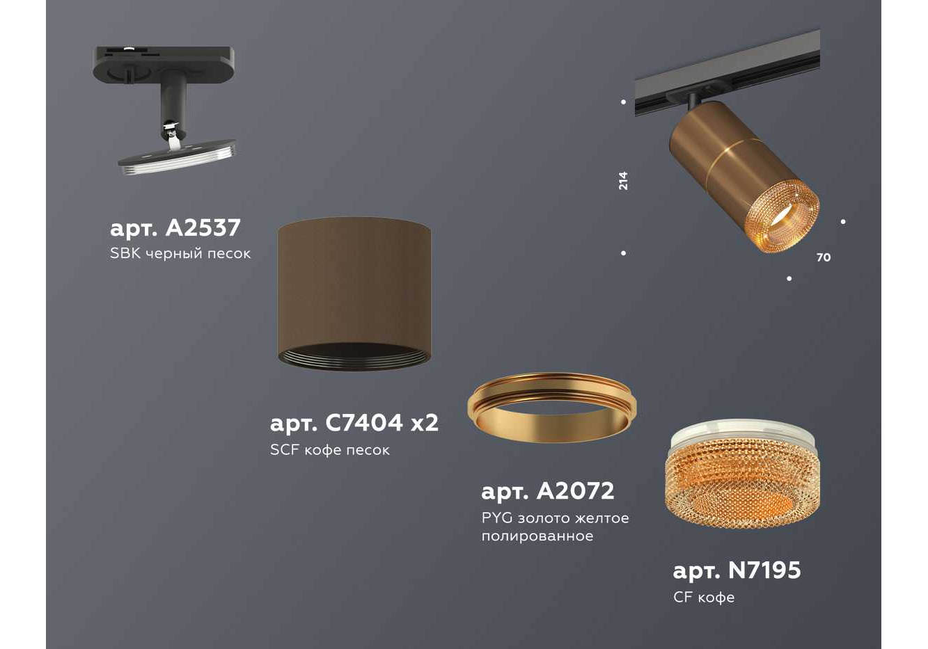 Комплект трекового светильника Ambrella light Track System XT (A2537, C7404, A2072, C7404, N7195) XT7404003
