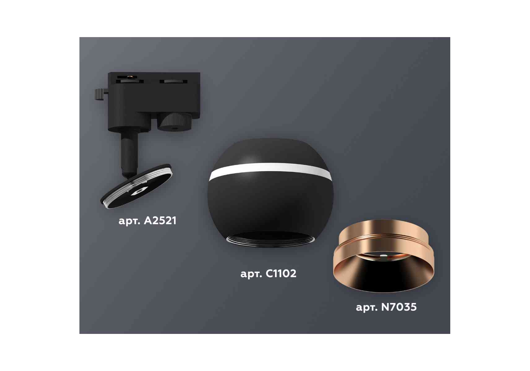 Комплект трекового светильника Ambrella light Track System XT1102006 SBK/PPG черный песок/золото розовое полированное (A2521, C1102, N7035)