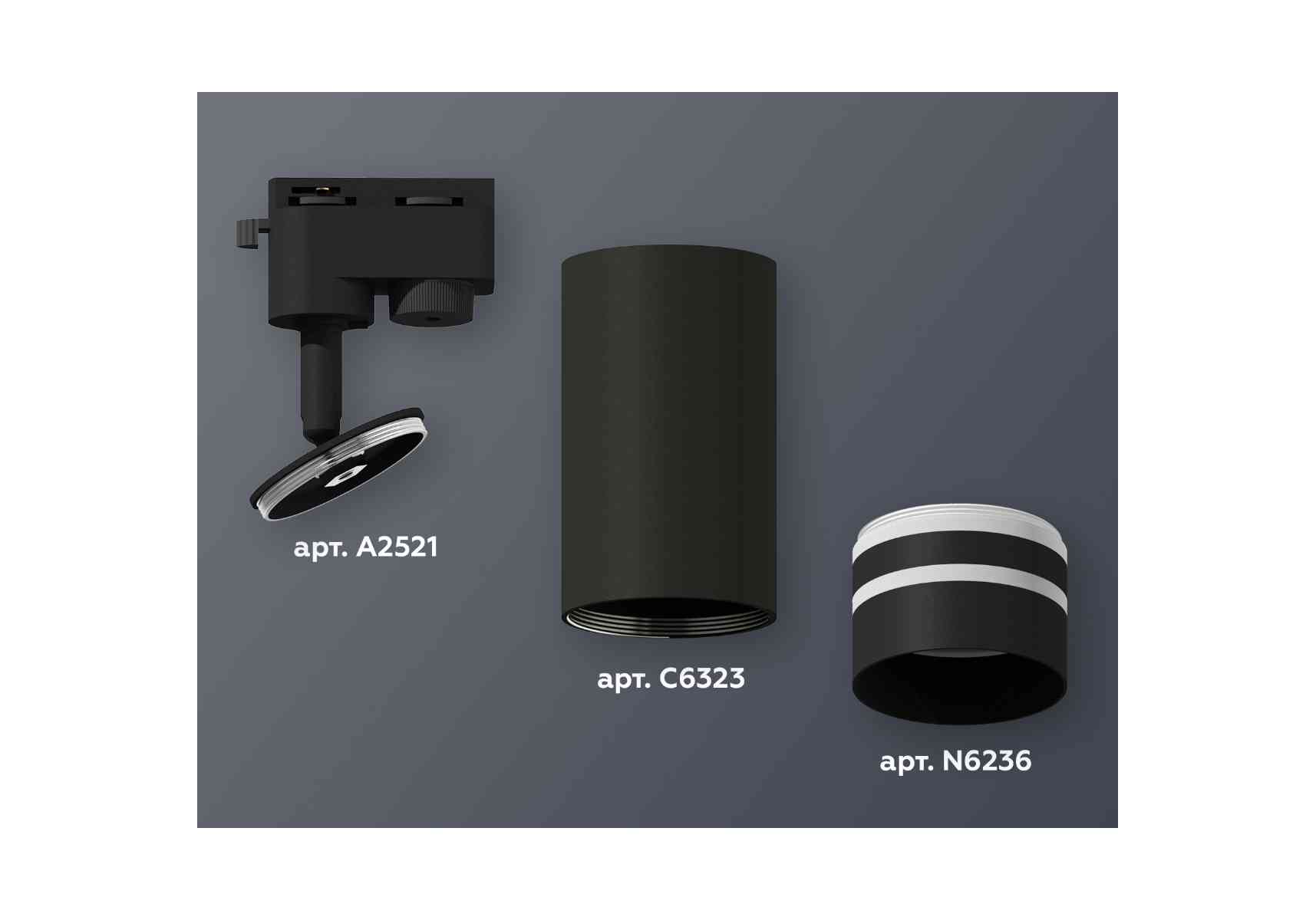 Комплект трекового светильника Ambrella light Track System XT6323121 SBK/FR черный песок/белый матовый (A2521, C6323, N6236)