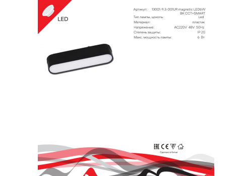 Трековый магнитный светильник (CCT+SMART) Reluce 13001-9.3-001UR magnetic LED6W BK CCT+SMART