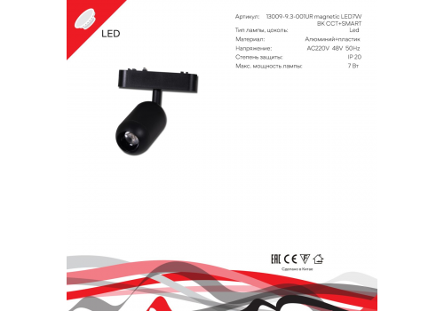 Трековый магнитный светильник (CCT+SMART) Reluce 13009-9.3-001UR magnetic Led7W BK CCT+SMART
