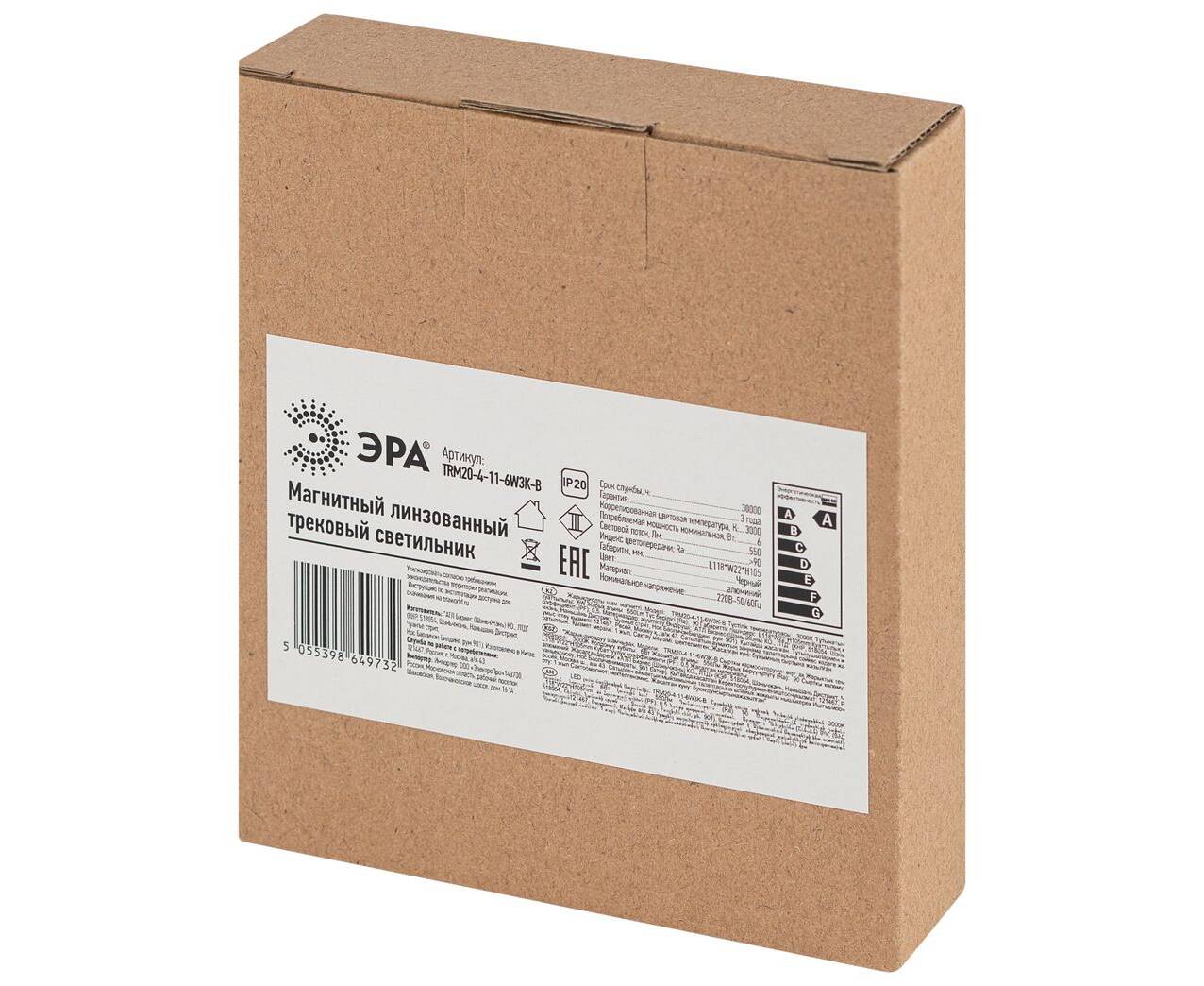 Трековый магнитный светильник Эра TRM20-4-11-6W3K-B Б0054814