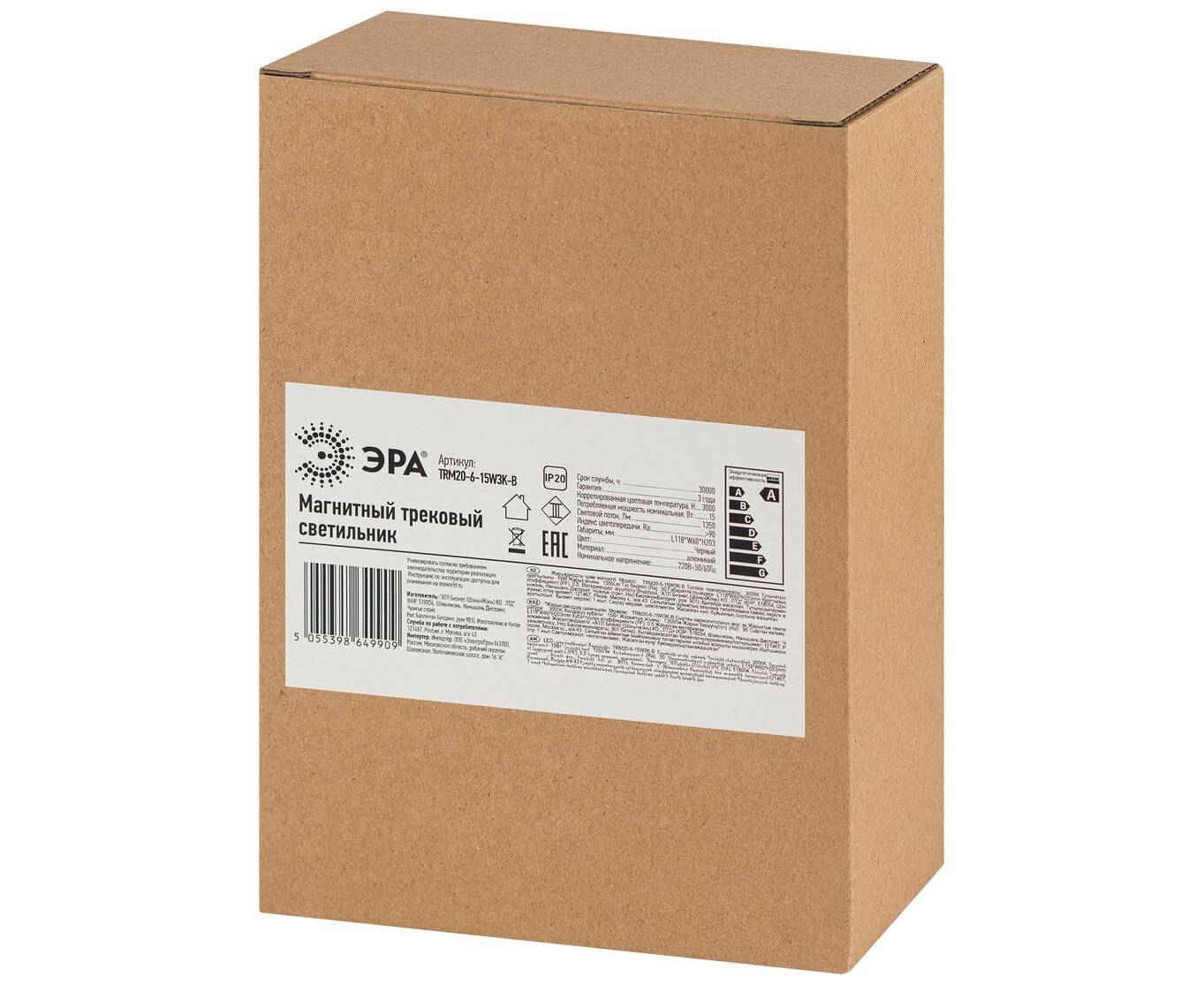 Трековый магнитный светильник Эра TRM20-6-15W3K-B Б0054822