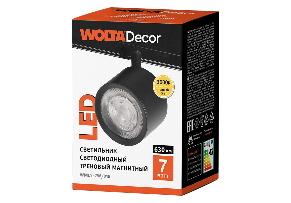 Трековый магнитный светильник Wolta WMLY-7W/01B