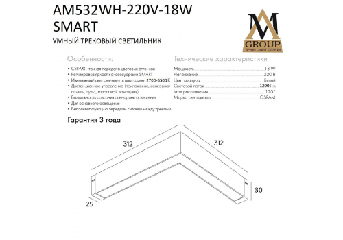 Трековый однофазный светильник AM Group AM532 WH-220V-18W SMART