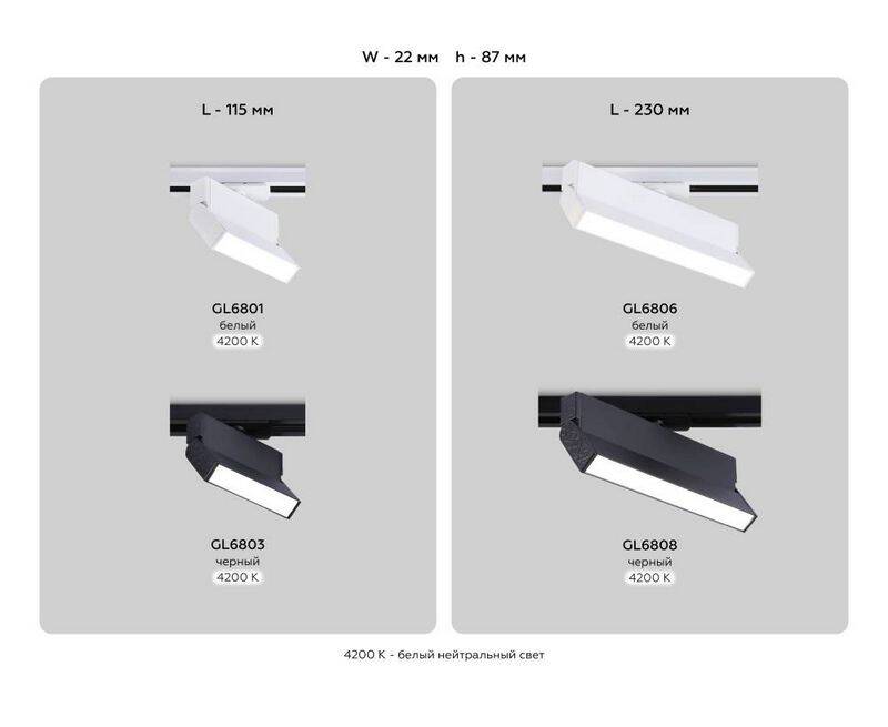 Трековый однофазный светильник Ambrella Light Track System GL6806