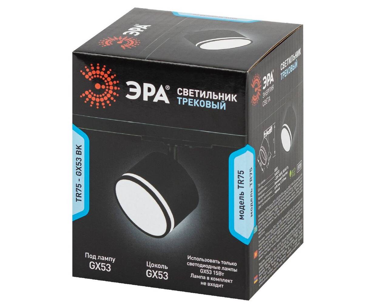 Трековый однофазный светильник Эра TR75 - GX53 BK Б0063981